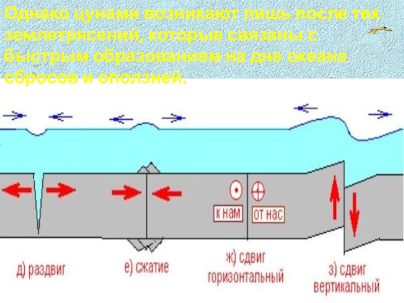 Слайд 6Однако цунами возникают лишь после тех землетрясений, которые связаны с быстрым