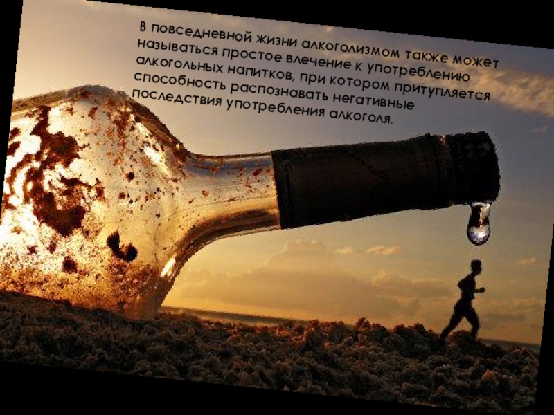 Слайд 7В повседневной жизни алкоголизмом также может называться простое влечение к употреблению