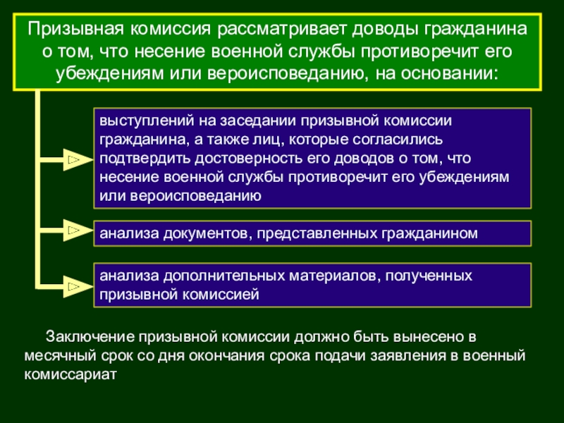 Слайд 12Призывная комиссия рассматривает доводы гражданина о том, что несение военной службы