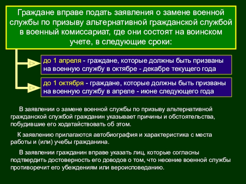 Слайд 11Граждане вправе подать заявления о замене военной службы по призыву альтернативной