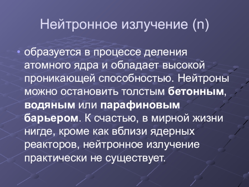 Слайд 17Нейтронное излучение (n)