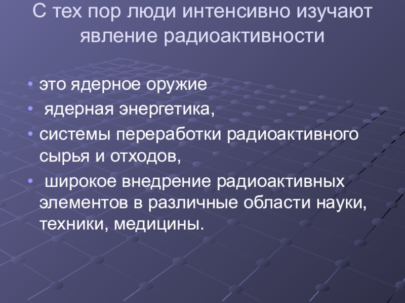 Слайд 5С тех пор люди интенсивно изучают явление радиоактивности