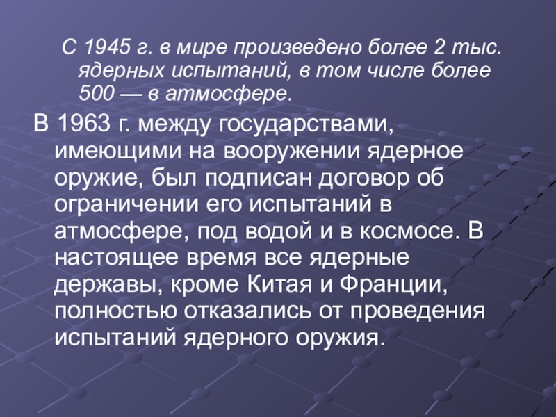 Слайд 7С 1945 г. в мире произведено более 2 тыс. ядерных испытаний,