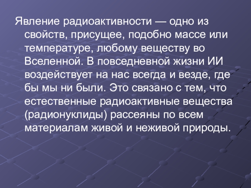 Слайд 3Явление радиоактивности — одно из свойств, присущее, подобно массе или температуре,