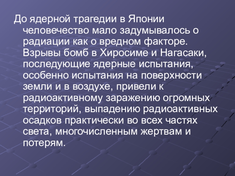 Слайд 6До ядерной трагедии в Японии человечество мало задумывалось о радиации как