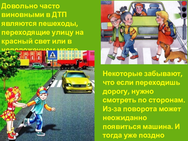 Некоторые забывают, что если переходишь дорогу, нужно смотреть по сторонам. Из-за поворота может неожиданно появиться машина. И тогда уже поздно будет смотреть в ее сторону.