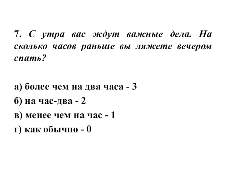 Слайд 147. С утра вас ждут важные дела. На сколько часов раньше
