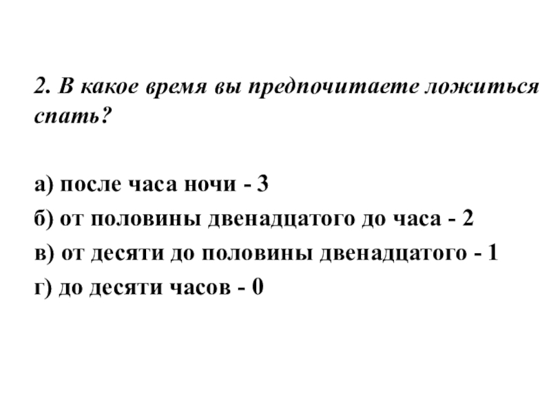 Слайд 92. В какое время вы предпочитаете ложиться спать?