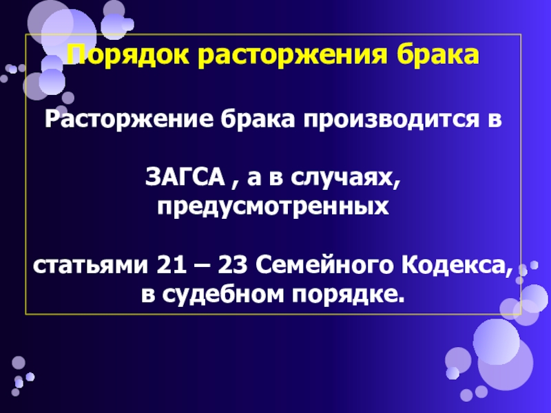 статьями 21 – 23 Семейного Кодекса, в судебном порядке.