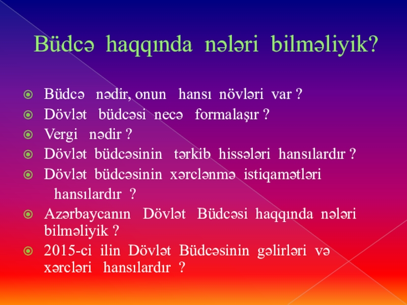 Mədəniyyət, incəsənət,informatika,idman və s.