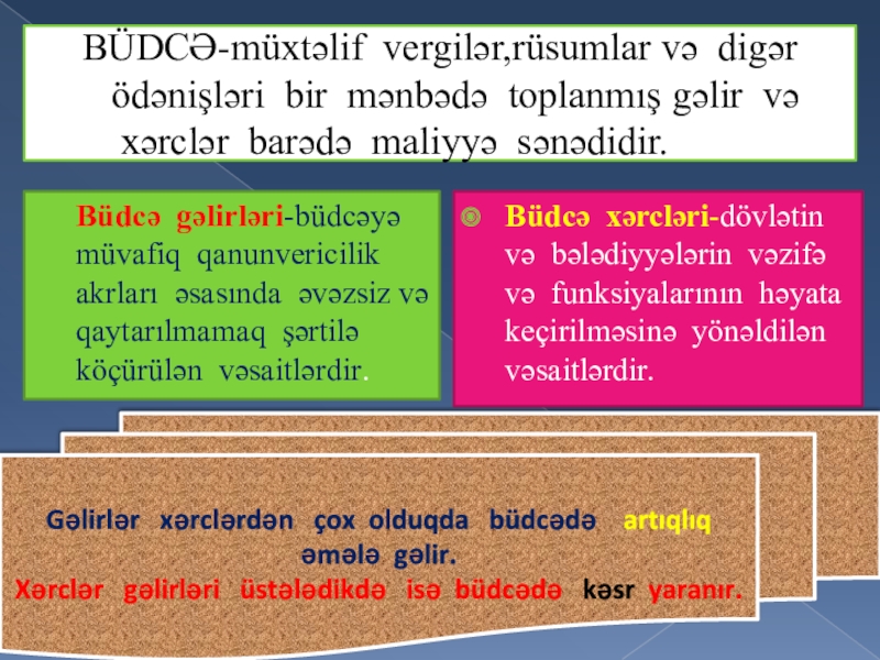 Gəlirlər xərclərdən çox olduqda büdcədə artıqlıq əmələ gəlir.