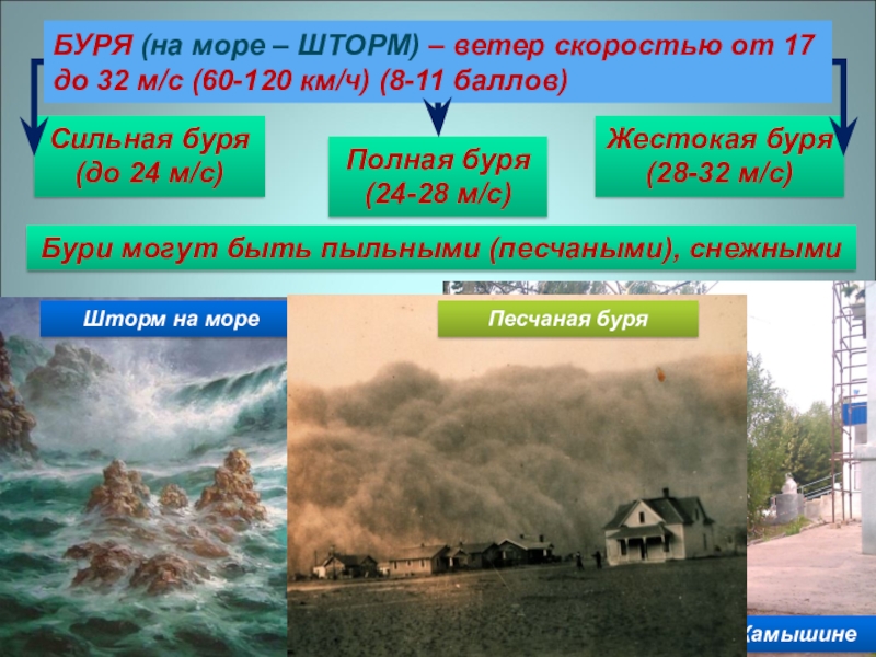 Бури могут быть пыльными (песчаными), снежными
