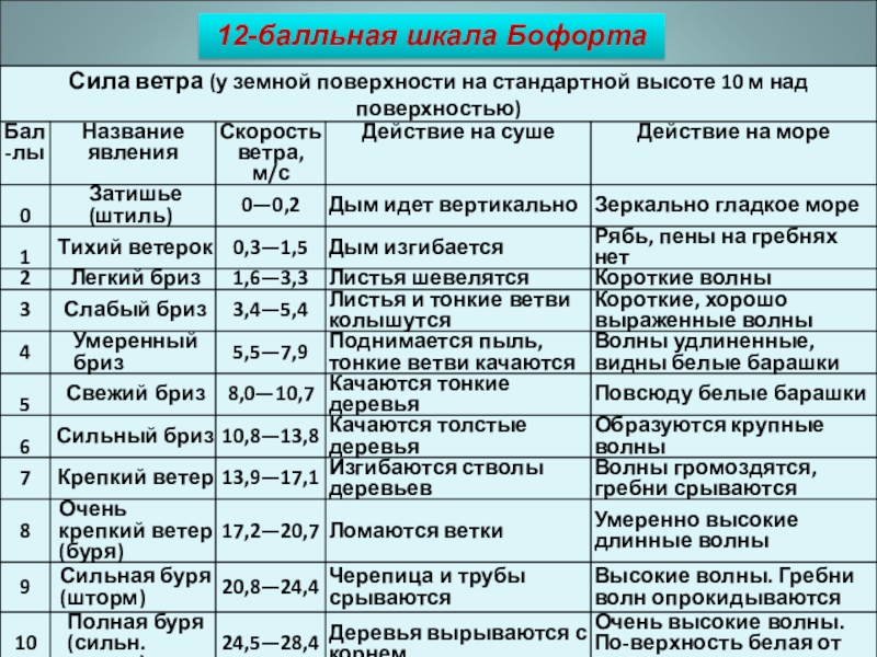 1. Шкала измерения силы ветра