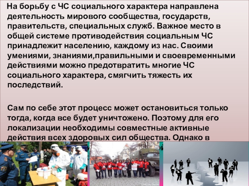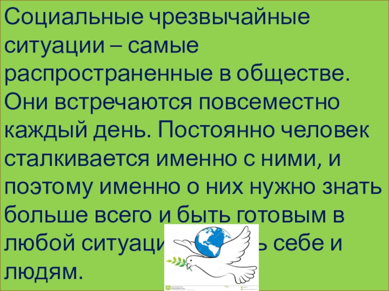 В отличие от опасных ситуаций в других сферах, их объектом и субъектом является социум. Особенность подобных опасностей заключается в том, что они угрожают, прежде всего, социуму и обусловлены поведенческими особенностями людей, объединенных в различные социальные группы.