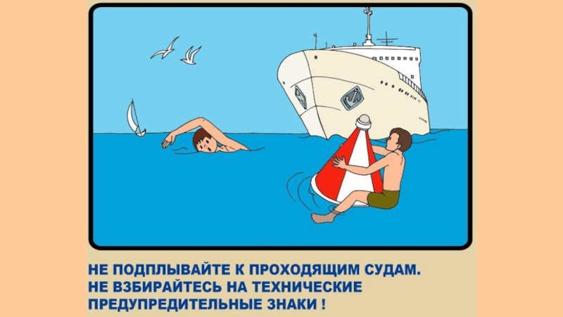 не следует подплывать к судам, лодкам, катерам, плотам и т.п.