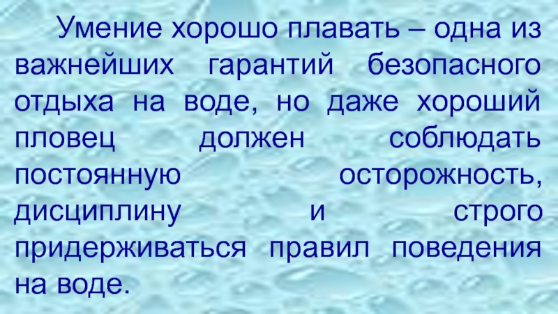 Слайд 3 Умение хорошо плавать – одна из важнейших гарантий