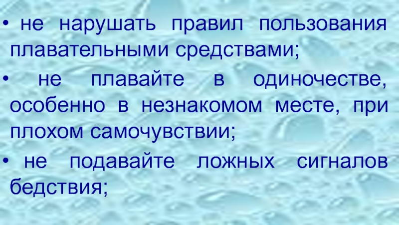 Слайд 6 не нарушать правил пользования плавательными средствами;