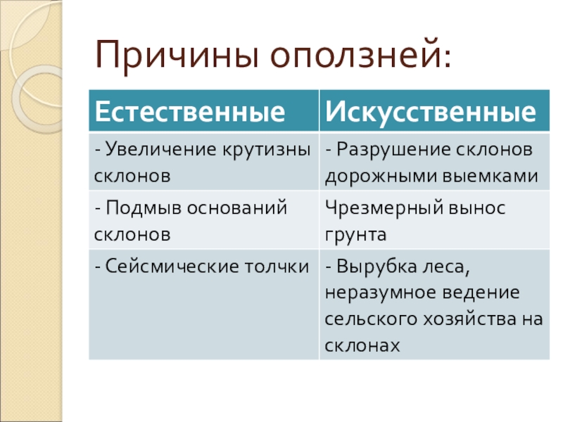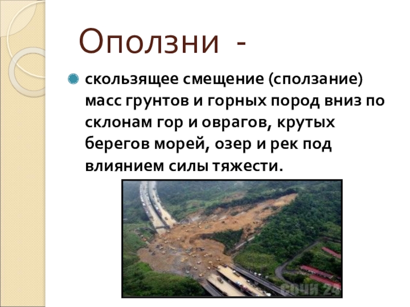 скользящее смещение (сползание) масс грунтов и горных пород вниз