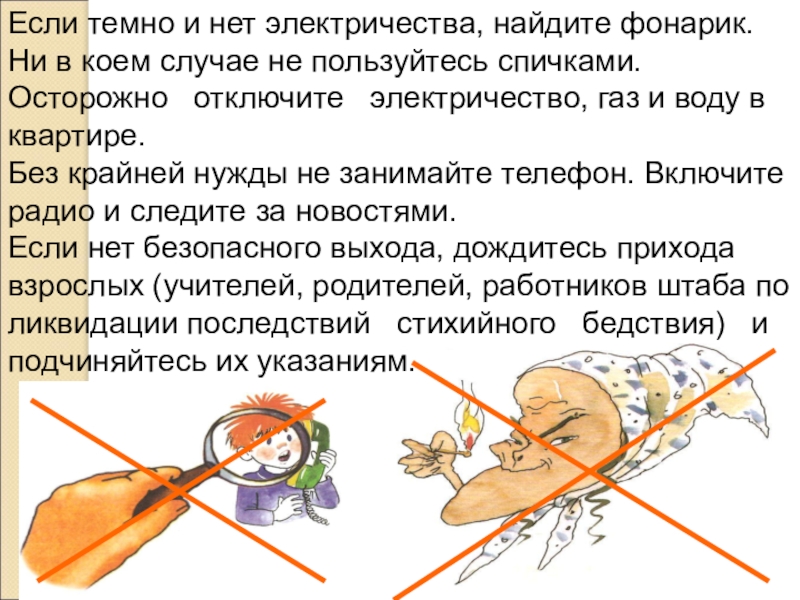 Слайд 15Ни в коем случае не пользуйтесь спичками.