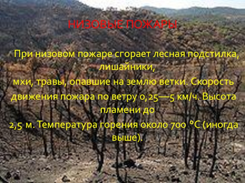 Слайд 24НИЗОВЫЕ ПОЖАРЫ