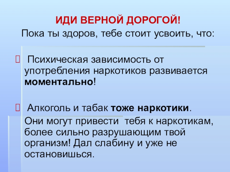 Слайд 8ИДИ ВЕРНОЙ ДОРОГОЙ!