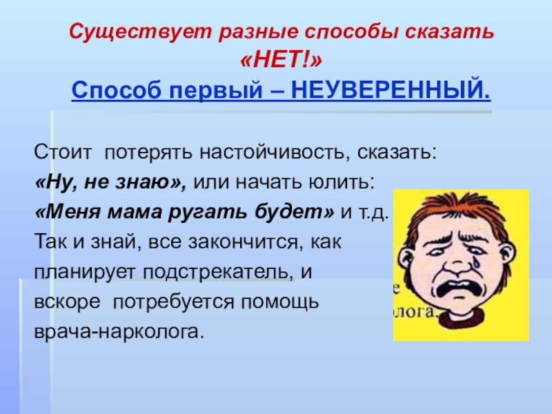 Слайд 16Способ первый – НЕУВЕРЕННЫЙ.