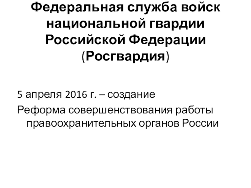 Слайд 14Федеральная служба войск национальной гвардии Российской Федерации (Росгвардия)