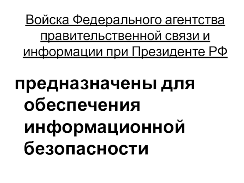 Слайд 26Войска Федерального агентства правительственной связи и информации при Президенте РФ