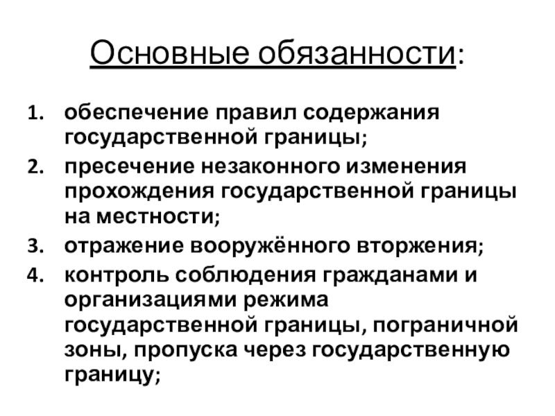 обеспечение выполнения международных обязательств государства по вопросам режима и охраны границы;