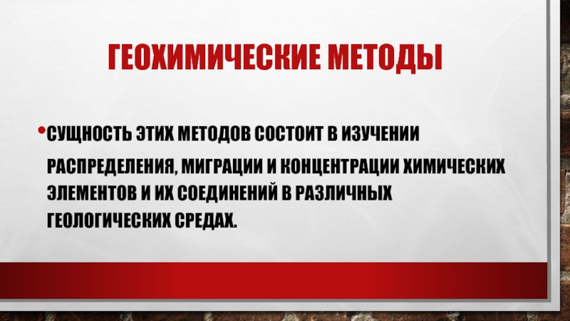 Геохимические методы Сущность этих методов состоит в изучении распределения, миграции и концентрации химических эле­ментов и их соединений