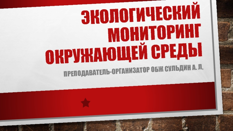 Экологический мониторинг окружающей средыПреподаватель-организатор ОБЖ Сульдин А. Л.