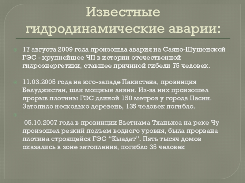 Прорывы плотин (дамб, шлюзов, перемычек и др.)