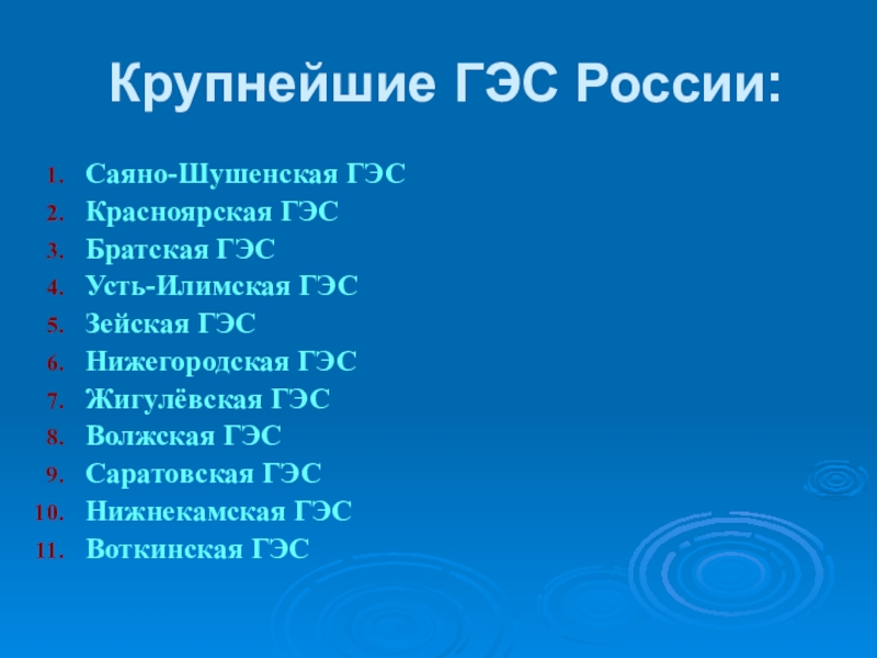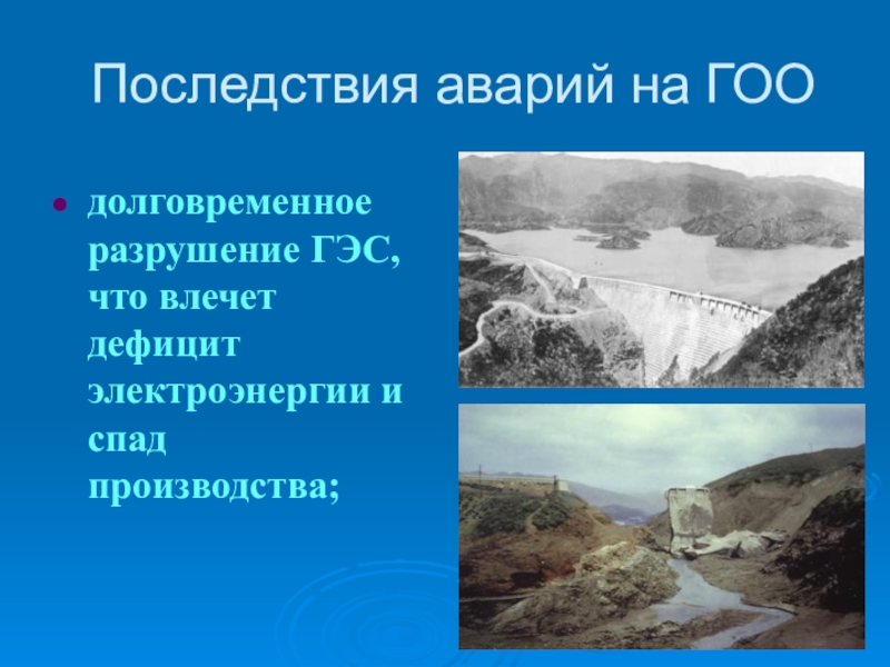 долговременное разрушение ГЭС, что влечет дефицит электроэнергии