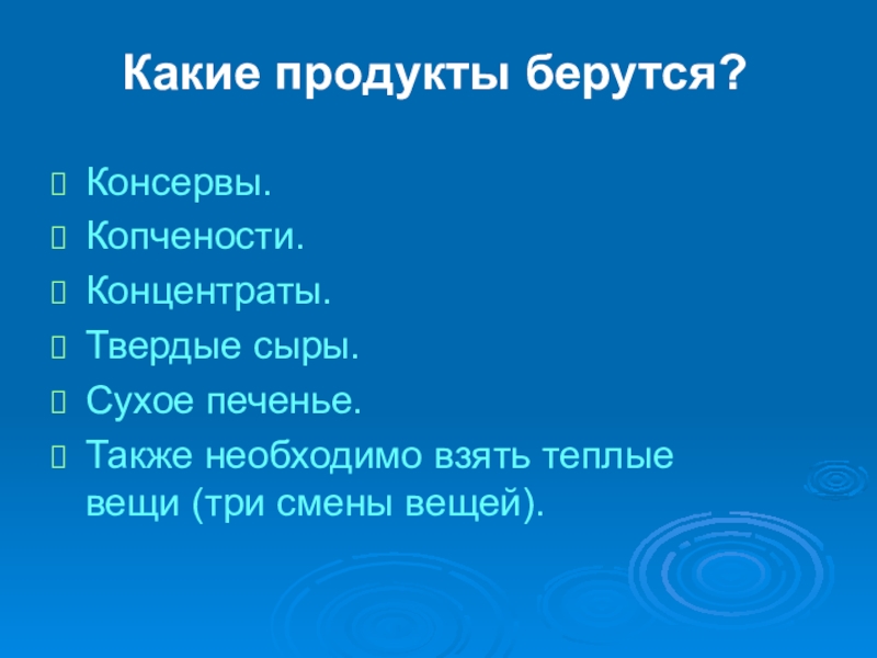 емкости, обладающие наименьшим весом. С собой берется термос или фляга.