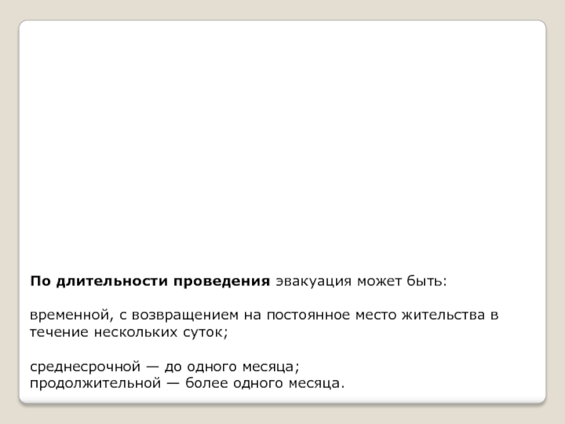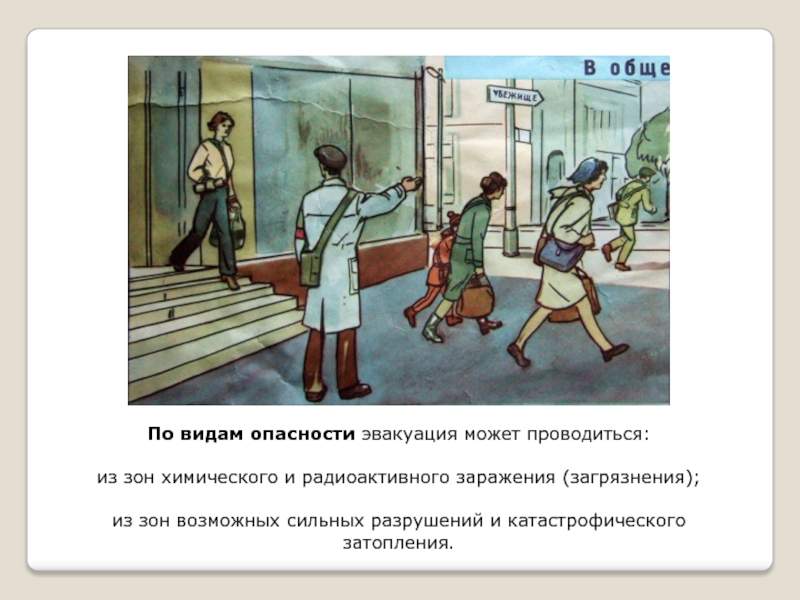 Слайд 25По удаленности безопасного района эвакуация может быть:
