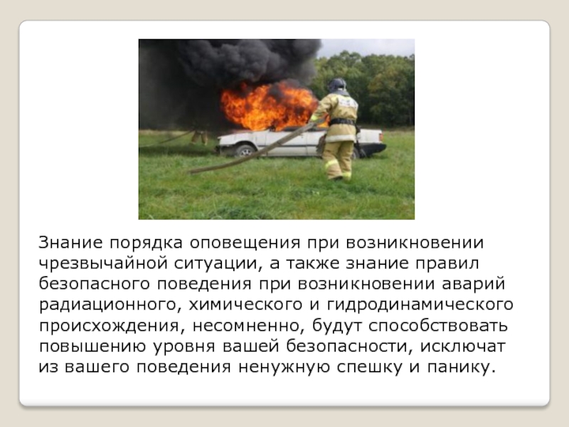 Слайд 14Знание порядка оповещения при возникновении чрезвычайной ситуации, а также знание правил