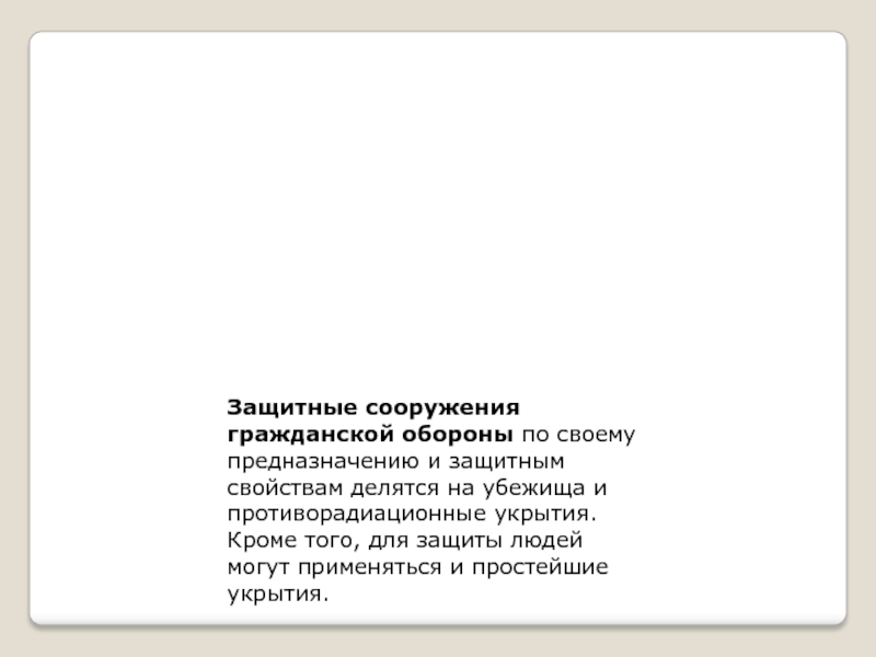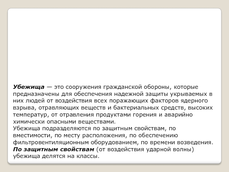 Слайд 35Убежища — это сооружения гражданской обороны, которые предназначены для обеспечения надежной защиты