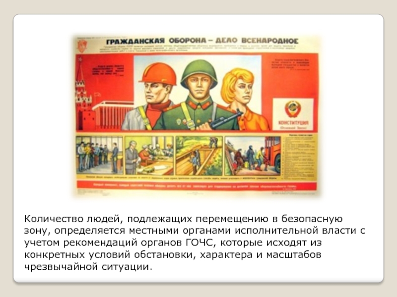 Слайд 19Количество людей, подлежащих перемещению в безопасную зону, определяется местными органами исполнительной