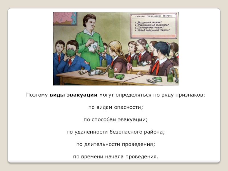 Слайд 22Поэтому виды эвакуации могут определяться по ряду признаков: