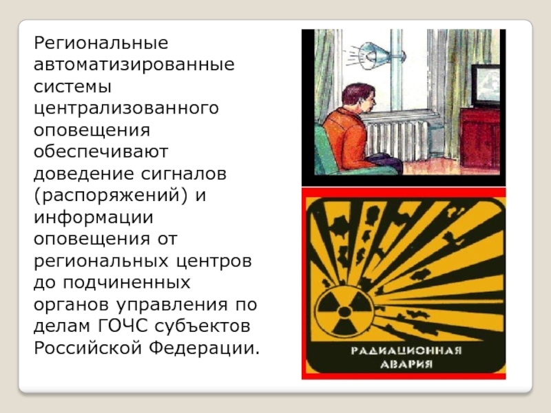 Слайд 9Региональные автоматизированные системы централизованного оповещения обеспечивают доведение сигналов (распоряжений) и информации
