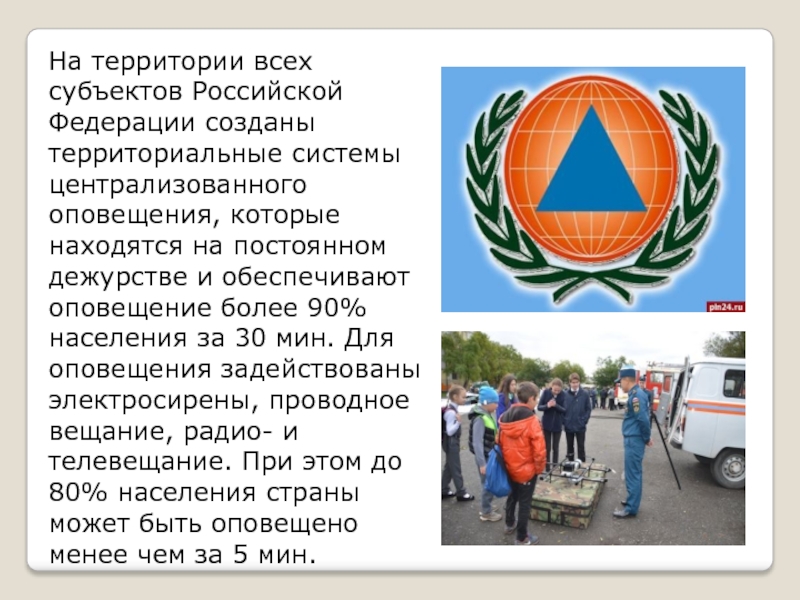 Слайд 10На территории всех субъектов Российской Федерации созданы территориальные системы централизованного оповещения,