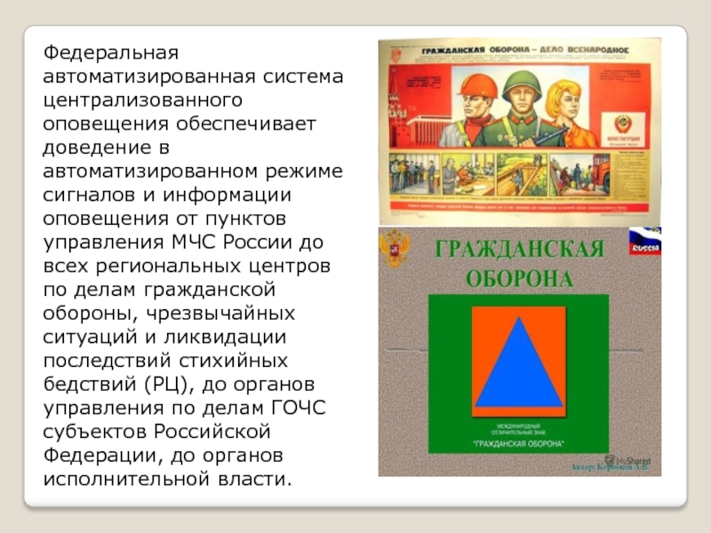 Слайд 8Федеральная автоматизированная система централизованного оповещения обеспечивает доведение в автоматизированном режиме сигналов