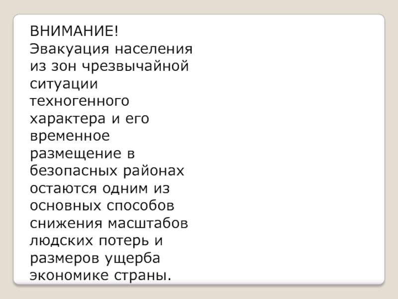 Эвакуация населения из зон чрезвычайной ситуации техногенного характера и его временное