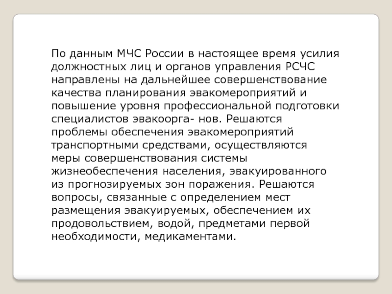 Слайд 30По данным МЧС России в настоящее время усилия должностных лиц и