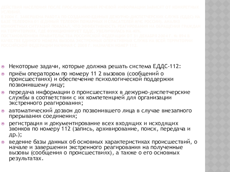 Некоторые задачи, которые должна решать система ЕДДС-112: