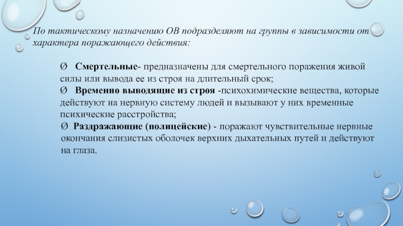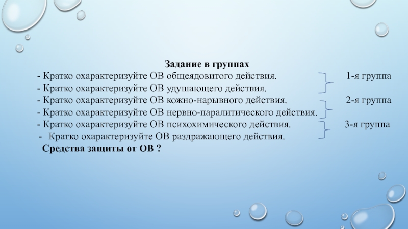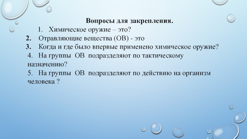 1. Обучающие – изучить классификацию и свойства отравляющих веществ, способы их воздействия на организм;