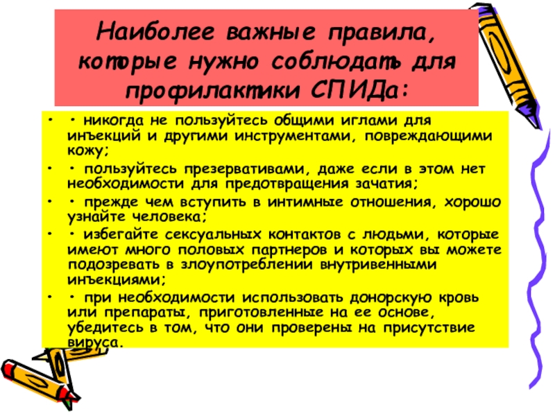 Слайд 20Наиболее важные правила, которые нужно соблюдать для профилактики СПИДа: