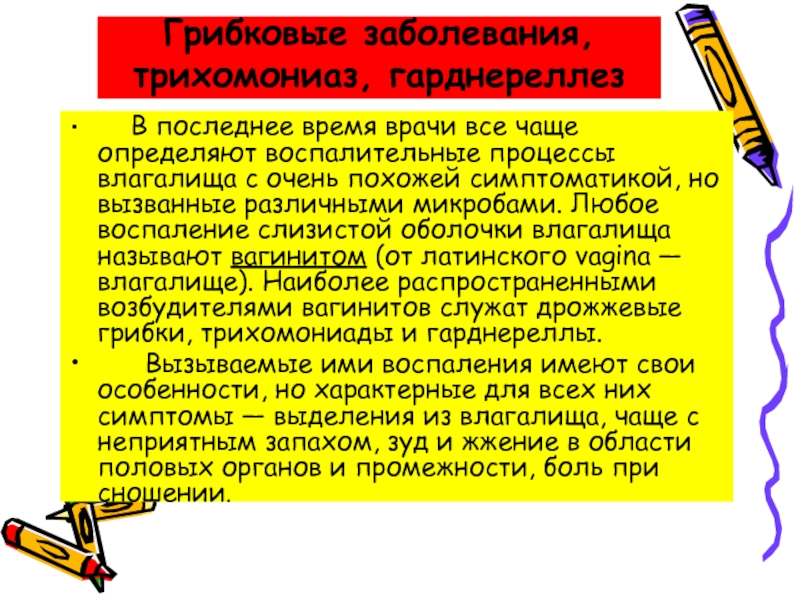 Слайд 10Грибковые заболевания, трихомониаз, гарднереллез