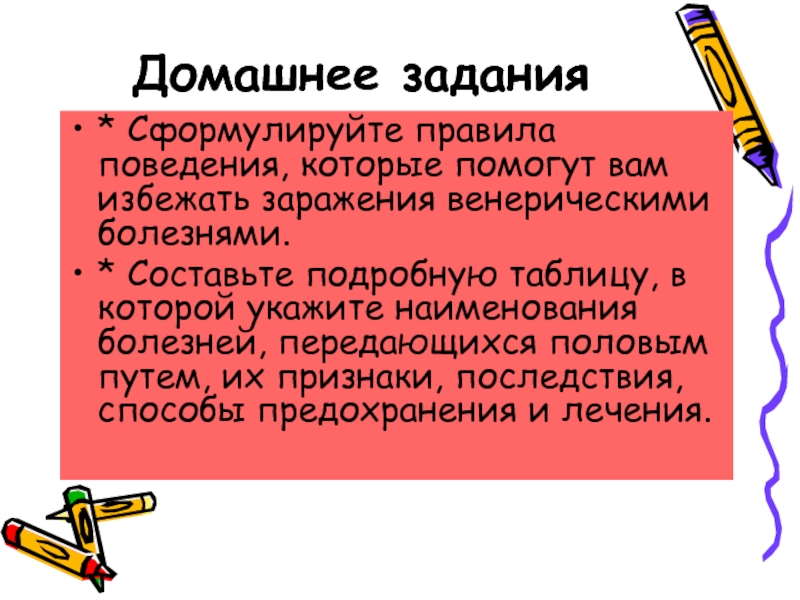 * Сформулируйте правила поведения, которые помогут вам избежать заражения венерическими