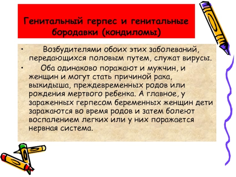 Слайд 12Генитальный герпес и генитальные бородавки (кондиломы)